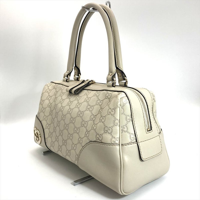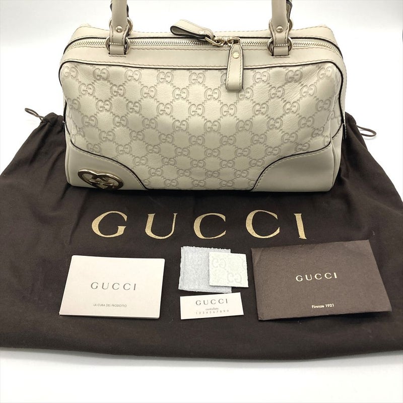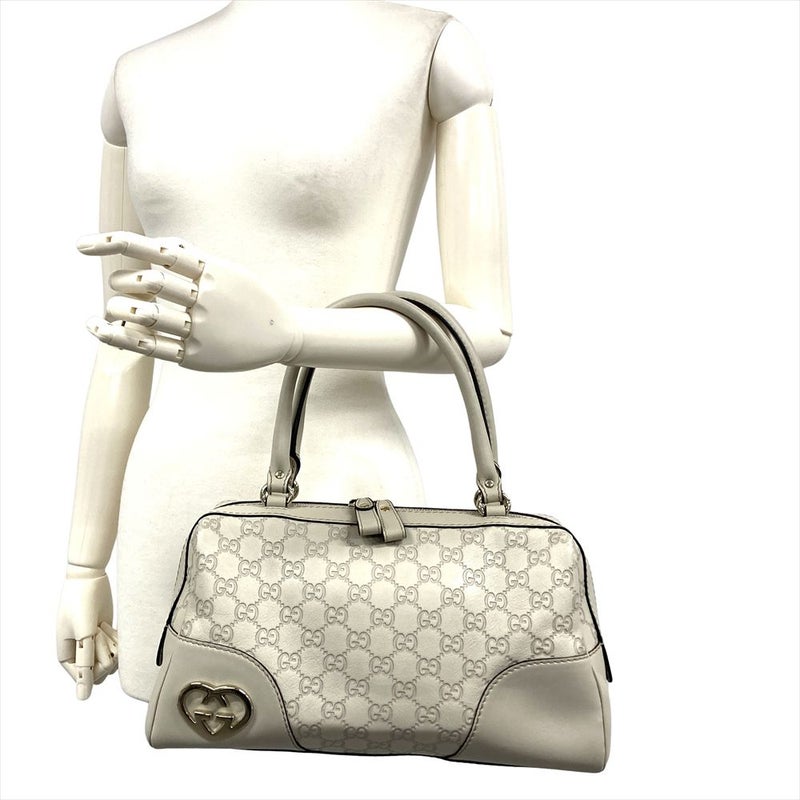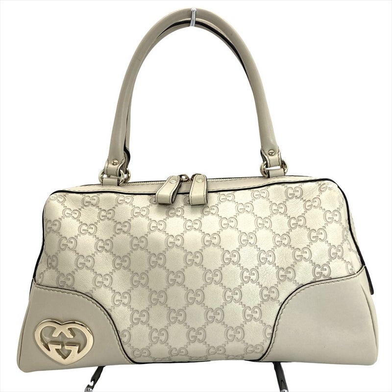 グッチ GUCCI ダブルGハート ラブリー ボストンバッグ ハンドバッグ グッチシマ 257067 ベージュ ゴールド金具 アイボリー レディース【中古】