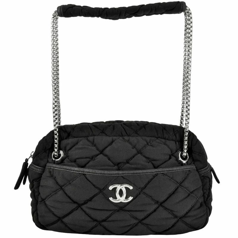 3. シャネル CHANEL マトラッセ バブルキルト ショルダーバッグ コットン A46168 ブラック シルバー金具 12番台 ココマーク【中古】