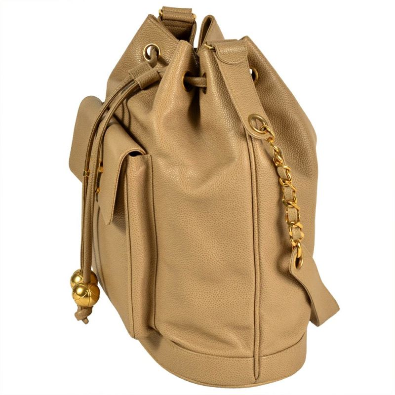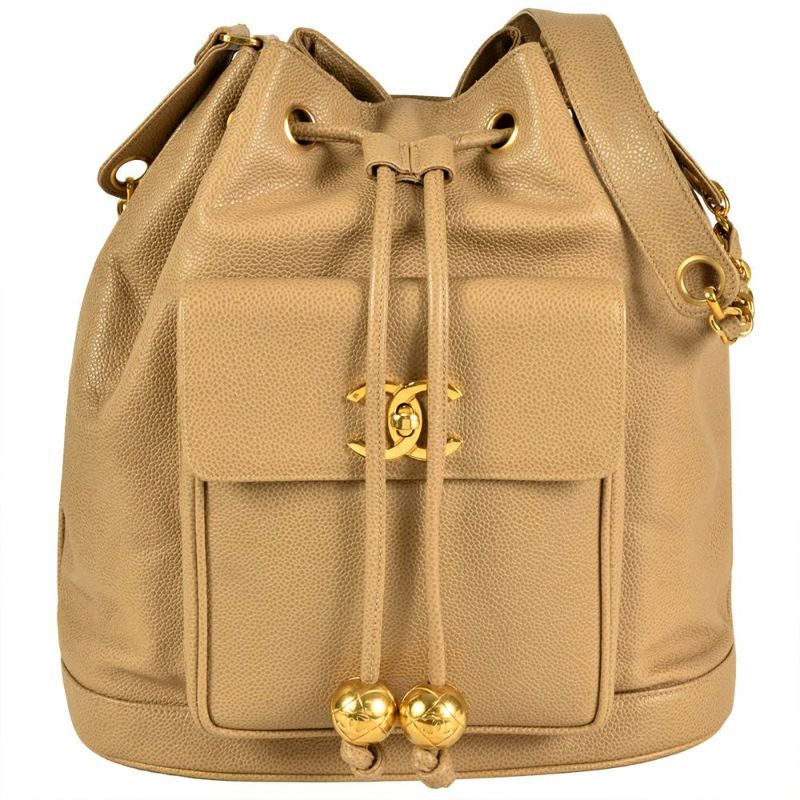 シャネル CHANEL ショルダーバッグ キャビアスキン ベージュ ゴールド金具 6桁3番台 ココマーク 巾着タイプ【中古】