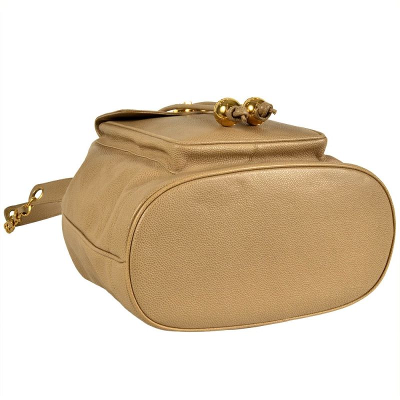 3. シャネル CHANEL ショルダーバッグ キャビアスキン ベージュ ゴールド金具 6桁3番台 ココマーク 巾着タイプ【中古】
