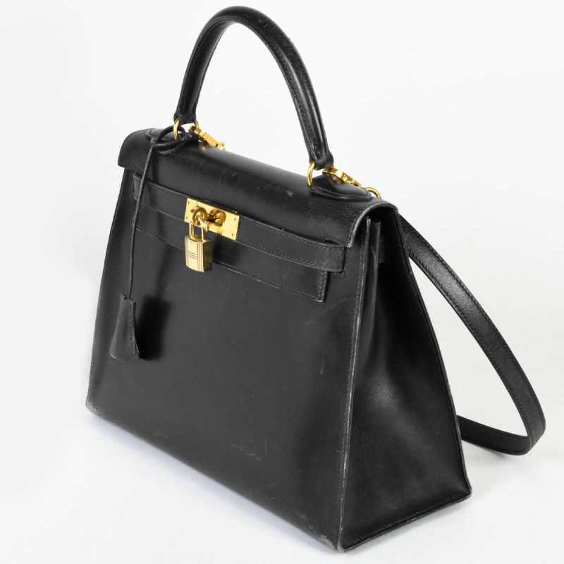 5. エルメス HERMES ケリー28 ハンドバッグ 2WAY ボックスカーフ 〇V刻印(1992年製造)刻印 ブラック ゴールド金具【中古】