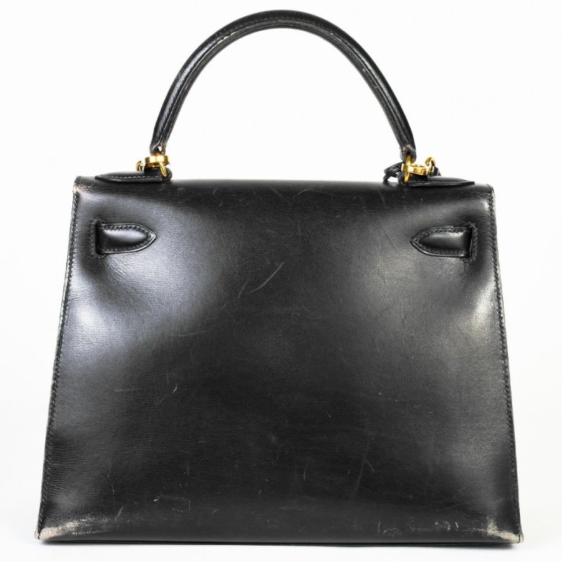 3. エルメス HERMES ケリー28 ハンドバッグ 2WAY ボックスカーフ 〇V刻印(1992年製造)刻印 ブラック ゴールド金具【中古】