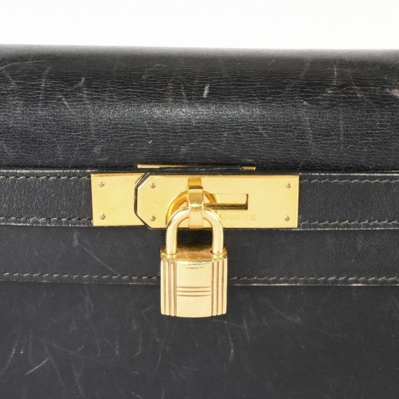 4. エルメス HERMES ケリー28 ハンドバッグ 2WAY ボックスカーフ 〇V刻印(1992年製造)刻印 ブラック ゴールド金具【中古】