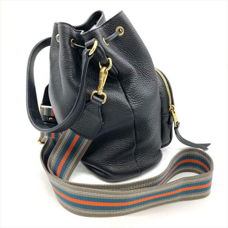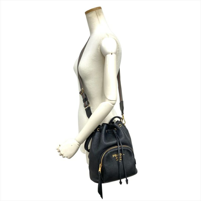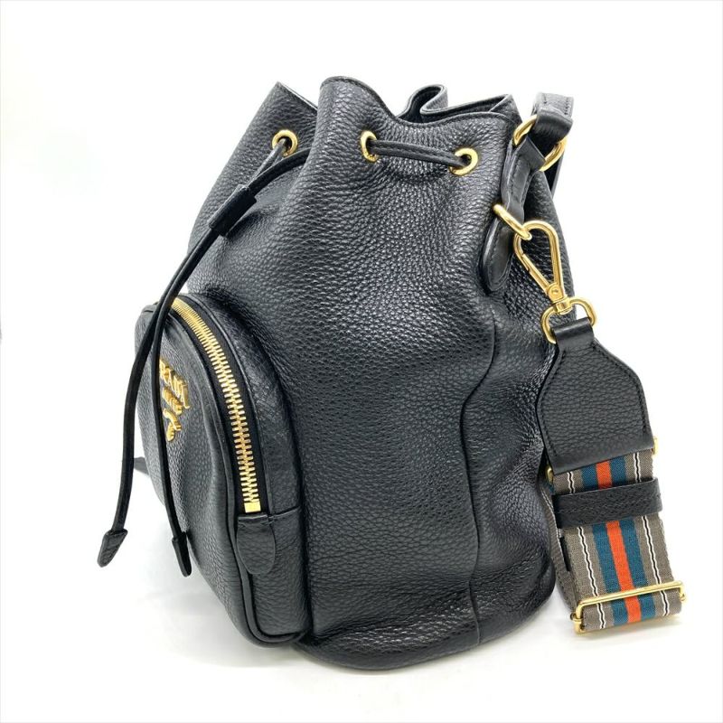 3. プラダ PRADA ヴィッテロダイノ ショルダーバッグ 2WAY レザー ブラック ゴールド金具 ドローストリングバッグ レディース【中古】