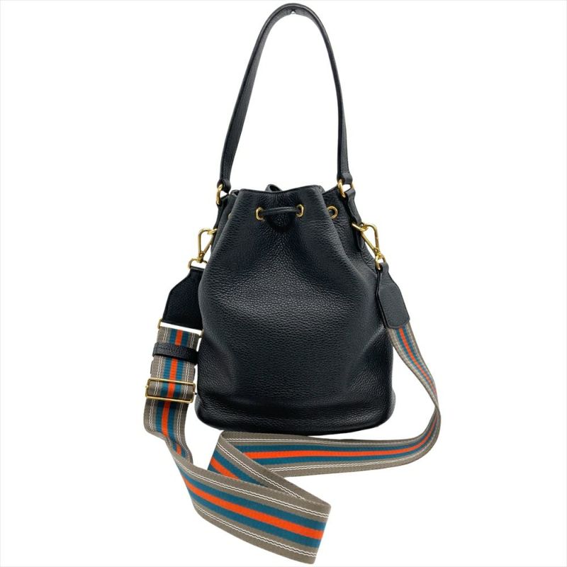 プラダ PRADA ヴィッテロダイノ ショルダーバッグ 2WAY レザー ブラック ゴールド金具 ドローストリングバッグ レディース【中古】