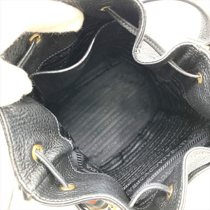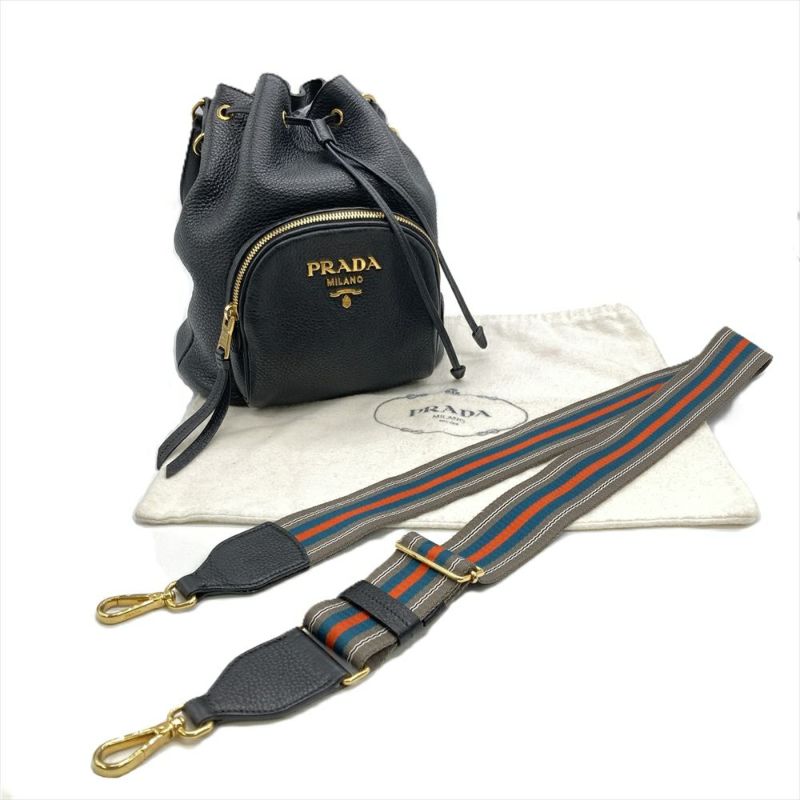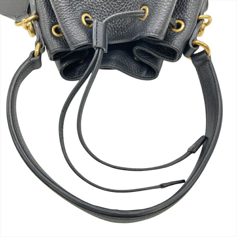 5. プラダ PRADA ヴィッテロダイノ ショルダーバッグ 2WAY レザー ブラック ゴールド金具 ドローストリングバッグ レディース【中古】