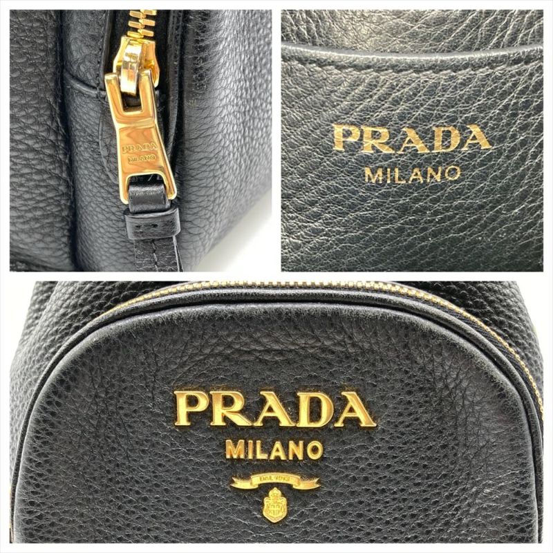4. プラダ PRADA ヴィッテロダイノ ショルダーバッグ 2WAY レザー ブラック ゴールド金具 ドローストリングバッグ レディース【中古】