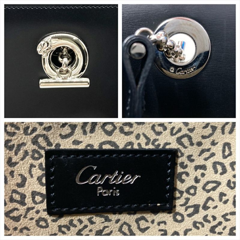 3. カルティエ Cartier パンテール トートバッグ レザー L1000360 ブラック シルバー金具 レオパード A4可 レディース【中古】