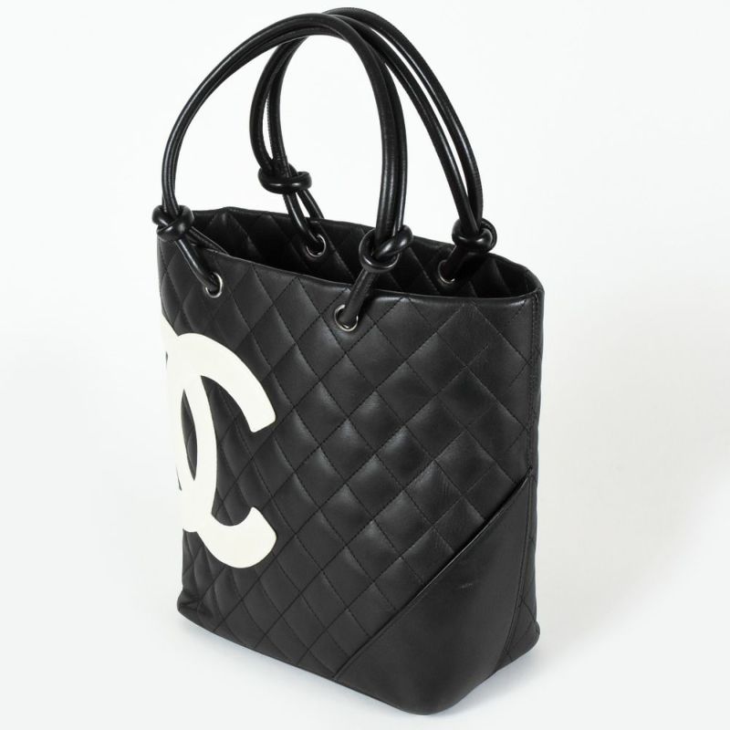 3. シャネル CHANEL カンボンライン ミディアム ココマーク トートバッグ ブラック シルバー金具 レディース【中古】