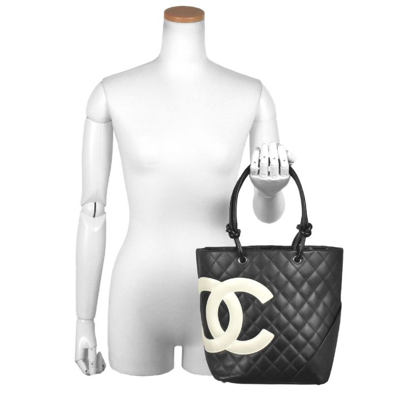 5. シャネル CHANEL カンボンライン ミディアム ココマーク トートバッグ ブラック シルバー金具 レディース【中古】