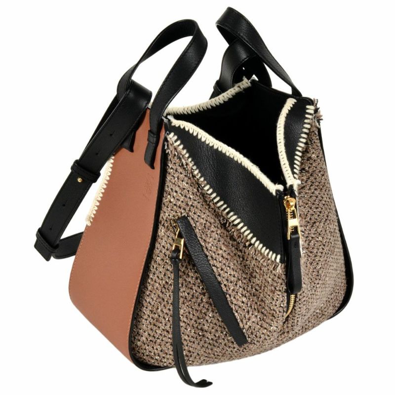 3. ロエベ LOEWE ハンモック スモール ツイード ハンドバッグ レザー 309.62.S35 ブラウン ショルダーバッグ レディース【中古】