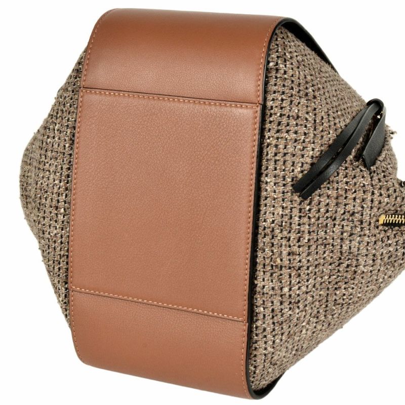 5. ロエベ LOEWE ハンモック スモール ツイード ハンドバッグ レザー 309.62.S35 ブラウン ショルダーバッグ レディース【中古】