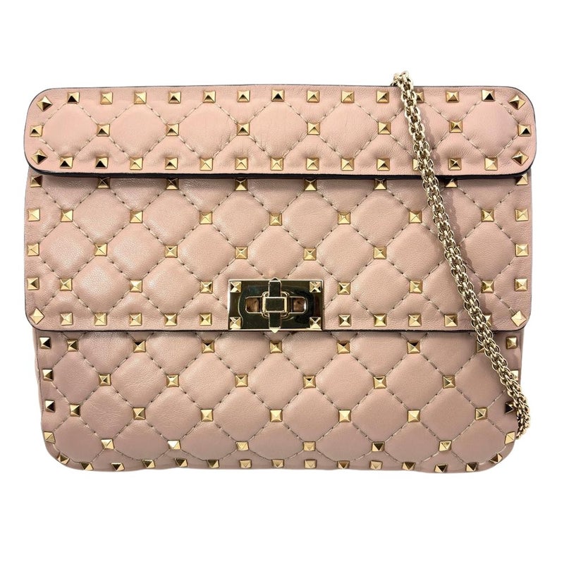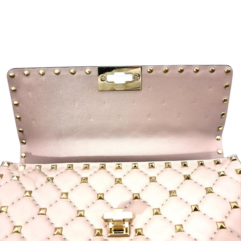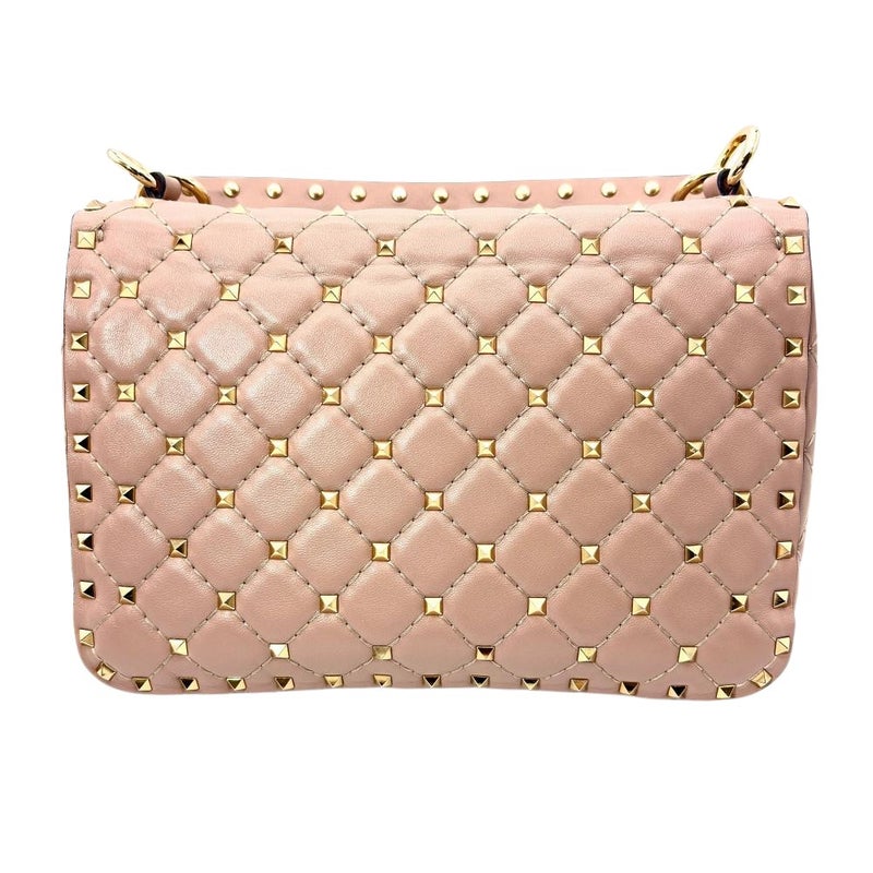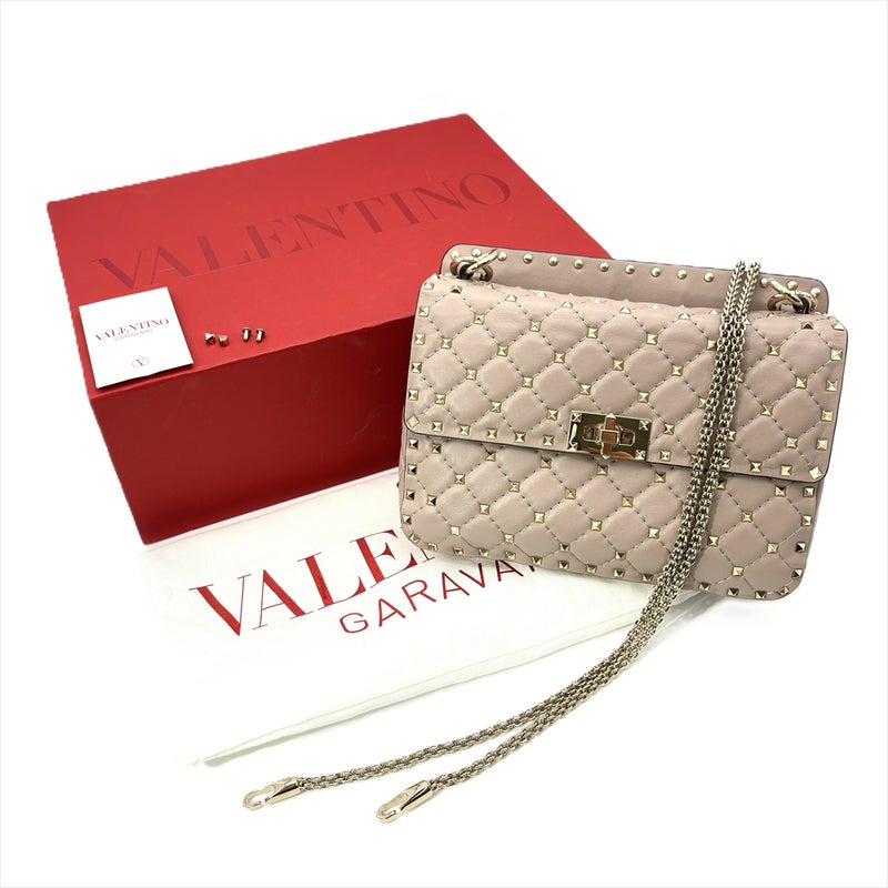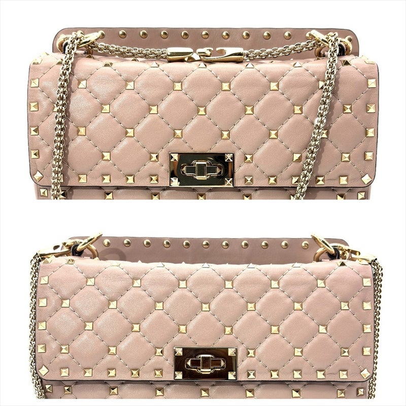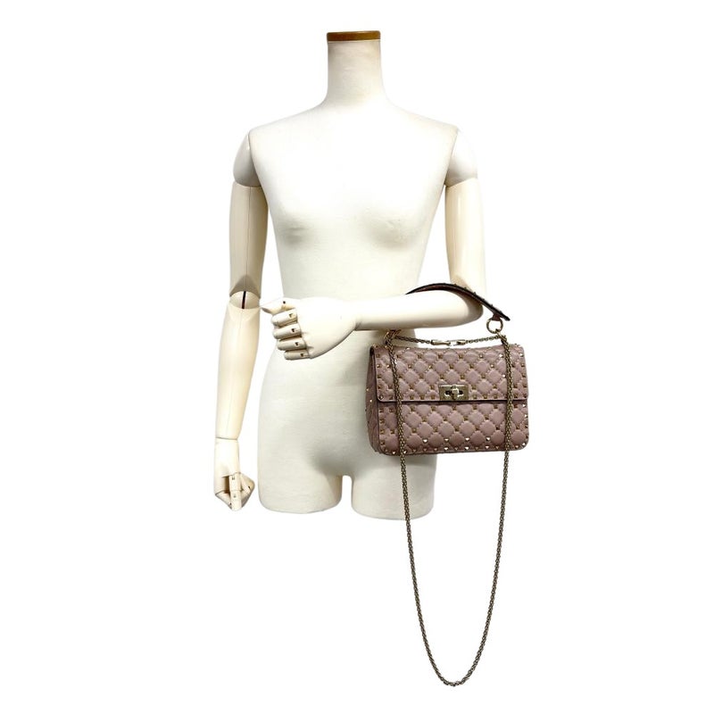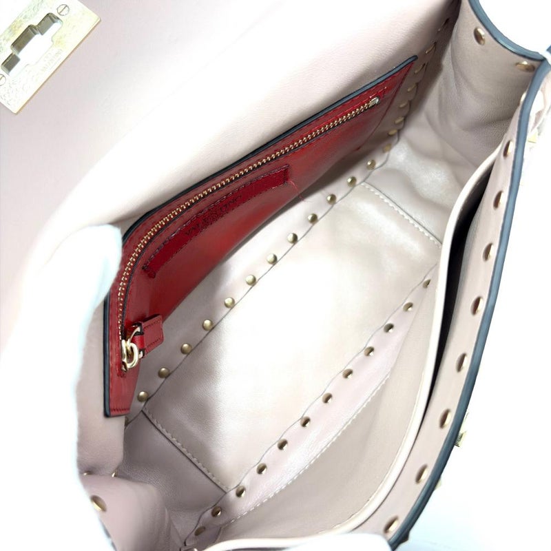 3. ヴァレンティノ VALENTINO ロックスタッズ スパイク ショルダーバッグ 3WAY レザー ゴールド金具 パウダー ピンクベージュ レディース【中古】