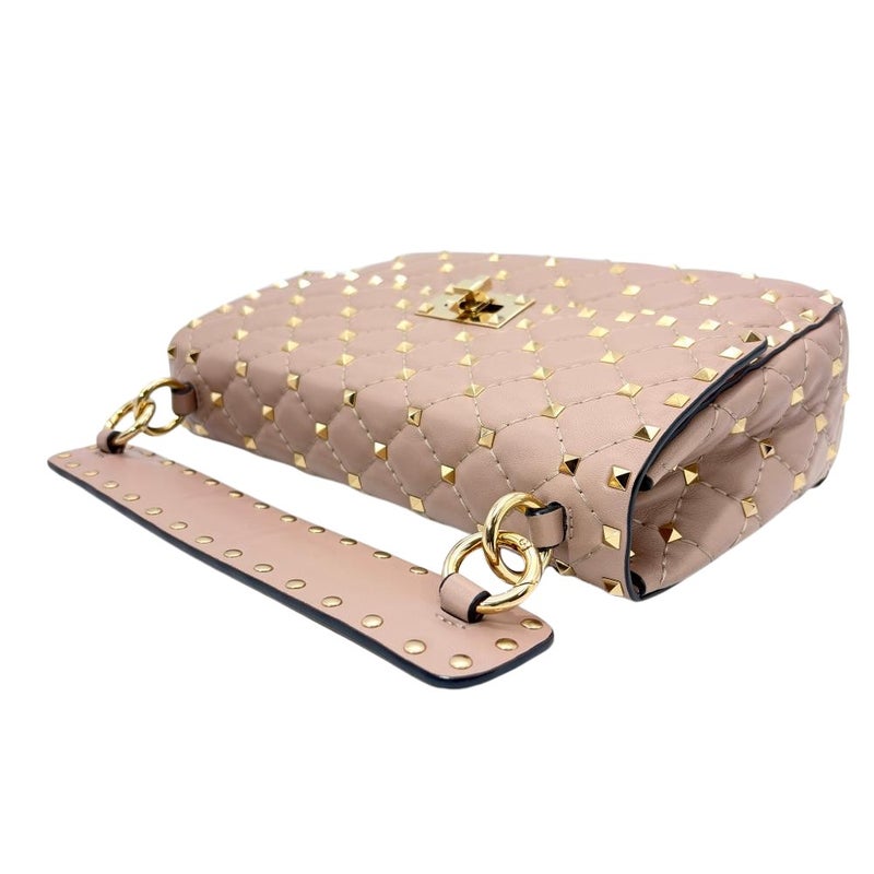 5. ヴァレンティノ VALENTINO ロックスタッズ スパイク ショルダーバッグ 3WAY レザー ゴールド金具 パウダー ピンクベージュ レディース【中古】