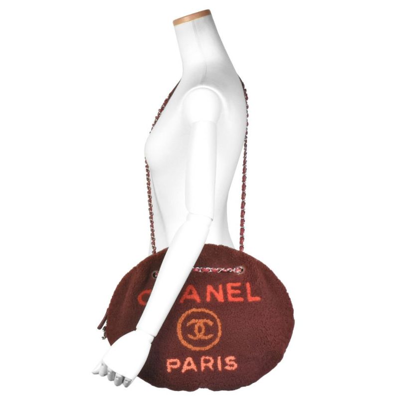 5. シャネル CHANEL ココマーク ドーヴィル ラウンド チェーン ショルダーバッグ ムートン ブラウン シルバー金具 シアリング【中古】