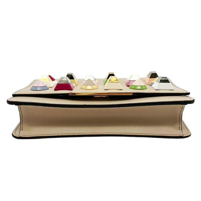 3. フェンディ FENDI マルチスタッズ チェーンウォレット ショルダーバッグ レザー 8M0346 ベージュ ゴールド金具 189-0189 レディース【中古】