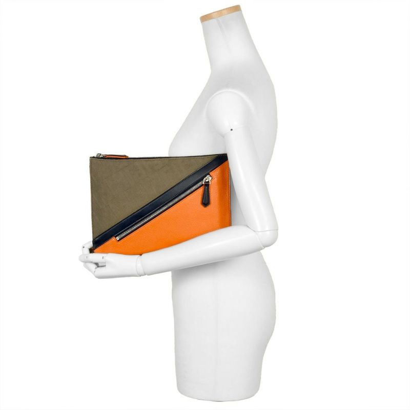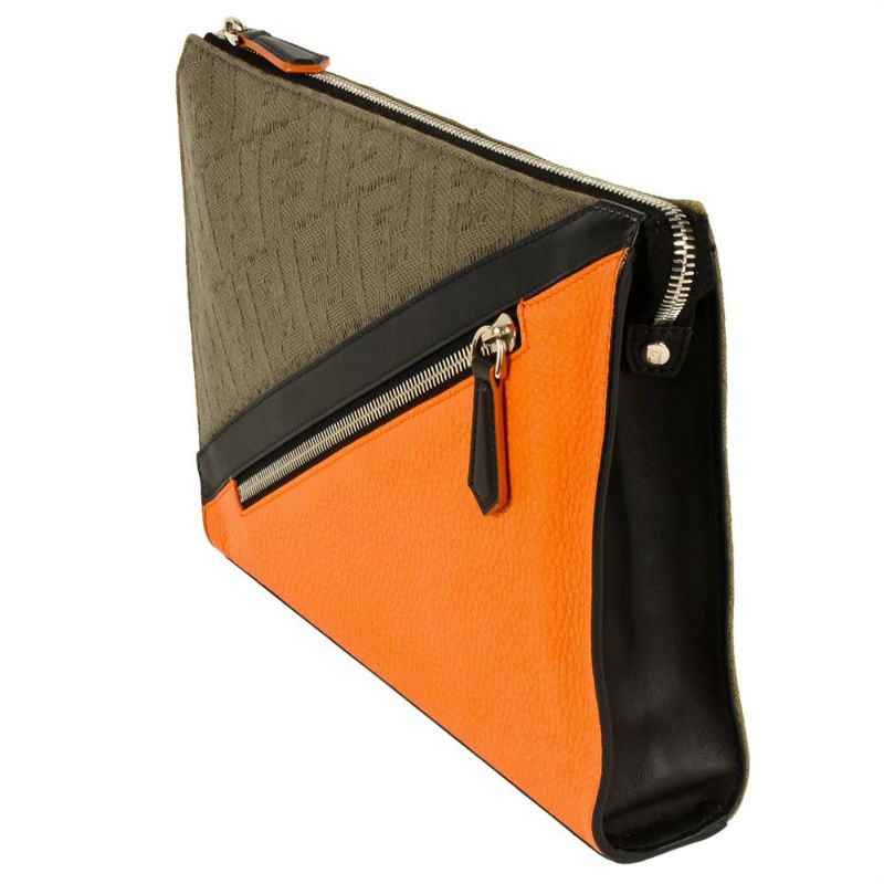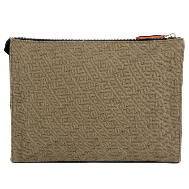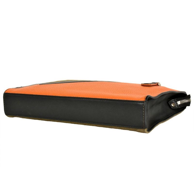 3. フェンディ FENDI ズッカ バイカラー クラッチバッグ レザー キャンバス 7VA433 AB01 オレンジ カーキ ユニセックス【中古】