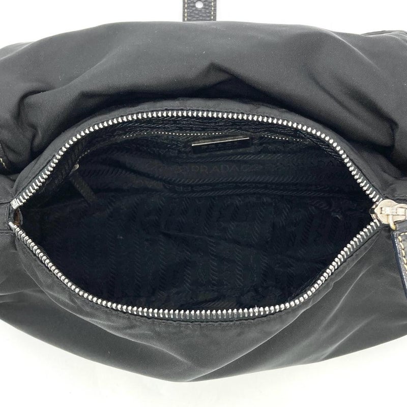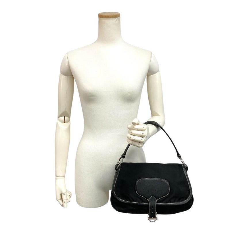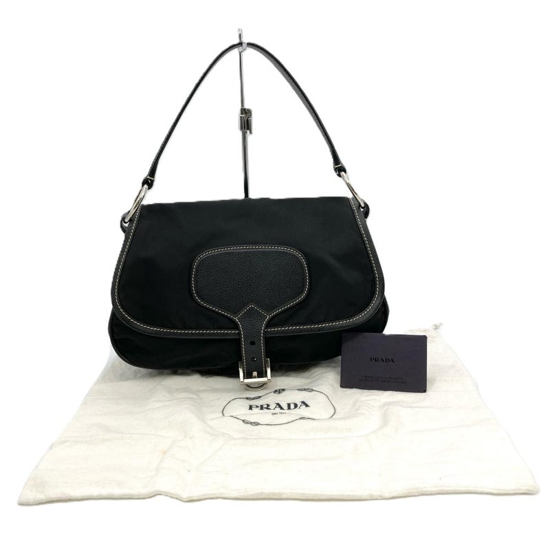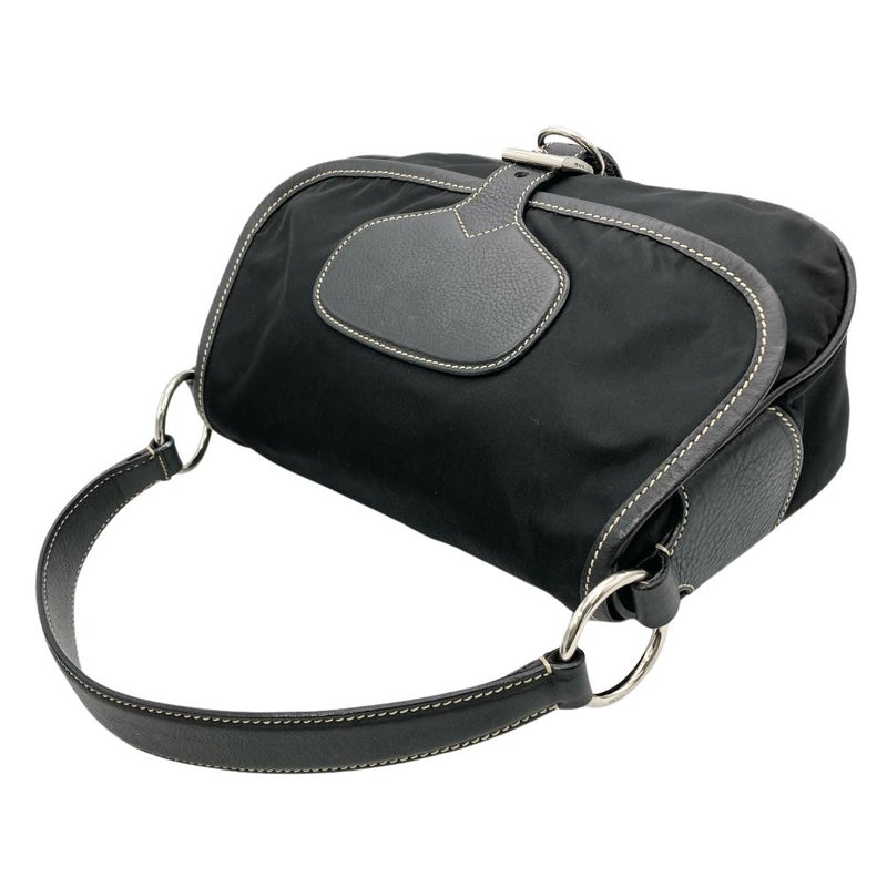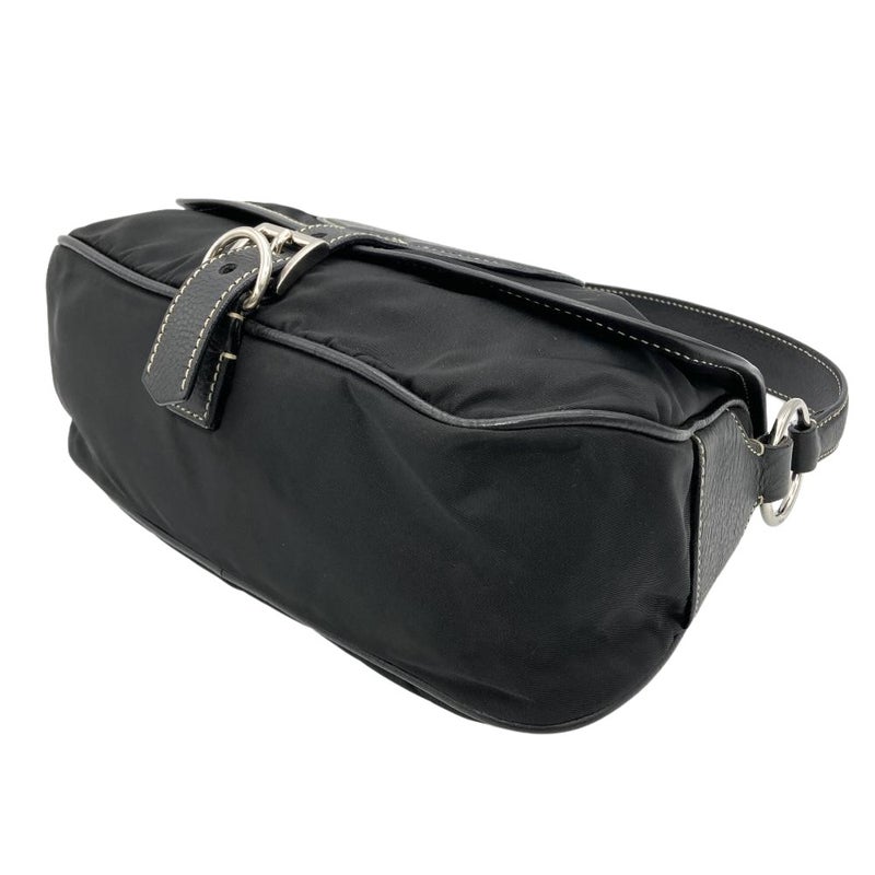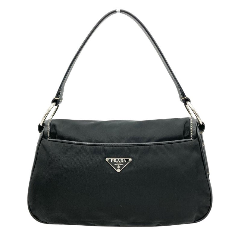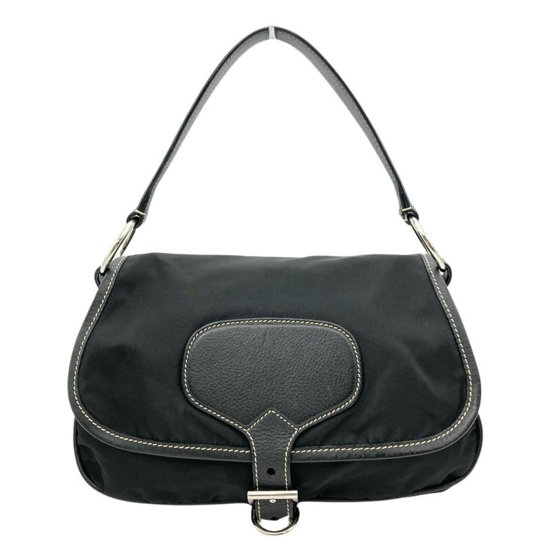 トライアングルロゴ フラップ ショルダーバッグ ナイロン ブラック【中古】