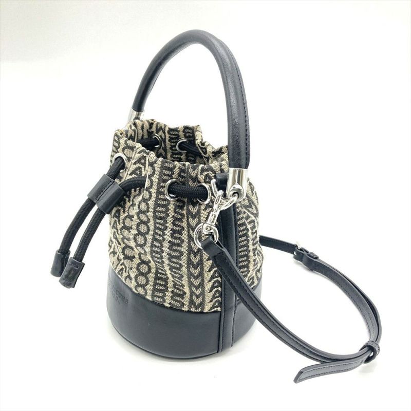 3. マークジェイコブス MARC JACOBS ザ モノグラム ジャカード マイクロ バケット ショルダーバッグ キャンバス H603M06RE22 ベージュ シルバー金具 レディース【中古】