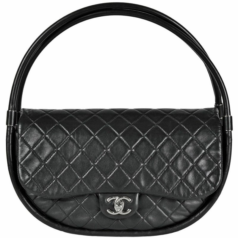 3. シャネル CHANEL フラフープ ハンドバッグ ラムスキン ブラック シルバー金具 ココマーク マトラッセ【中古】