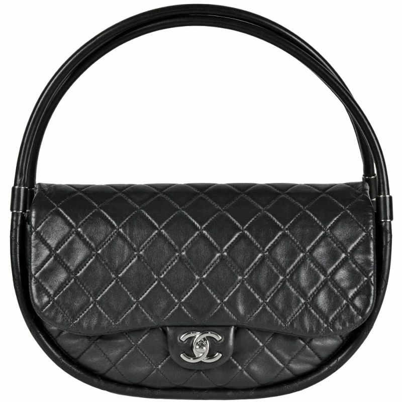 シャネル CHANEL フラフープ ハンドバッグ ラムスキン ブラック シルバー金具 ココマーク マトラッセ【中古】