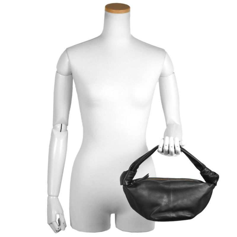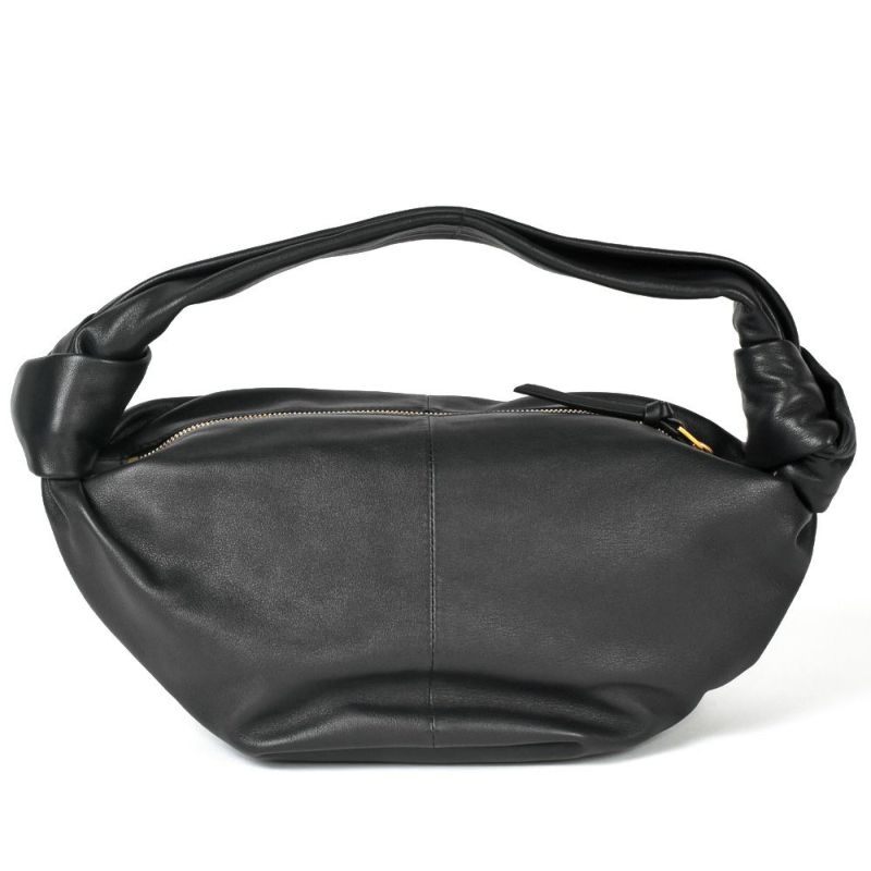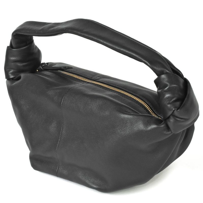 美品 ボッテガヴェネタ BOTTEGA VENETA ダブルノット ミニ ハンドバッグ レザー ブラック【中古】