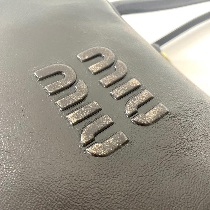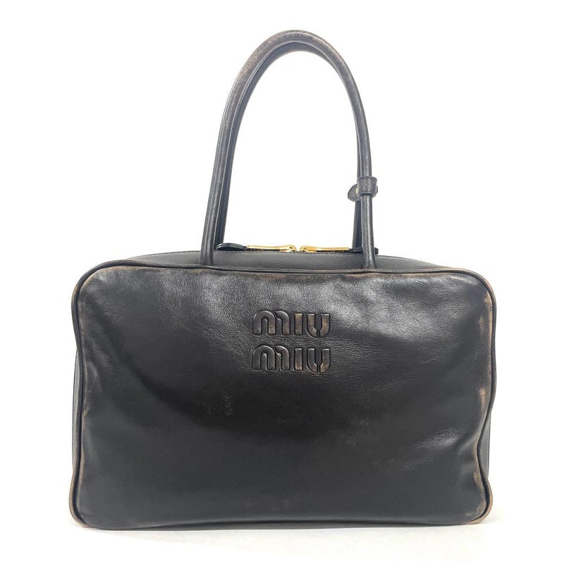 3. ミュウミュウ MIUMIU ボー トートバッグ レザー 5BB117 コーヒー ヴィンテージ加工【中古】