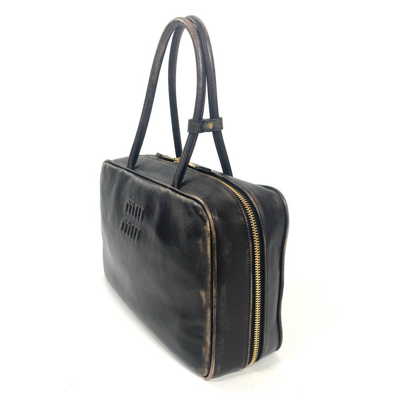 4. ミュウミュウ MIUMIU ボー トートバッグ レザー 5BB117 コーヒー ヴィンテージ加工【中古】