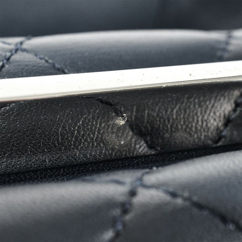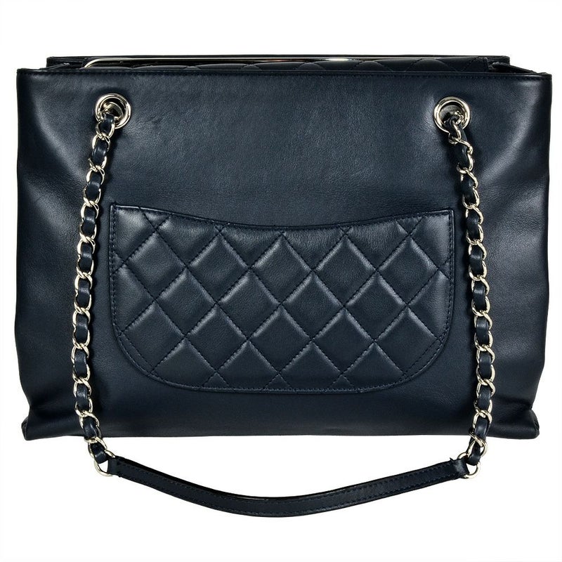 3. シャネル CHANEL マトラッセ チェーン トートバッグ レザー ネイビー シルバー金具 ココマーク チャーム【中古】