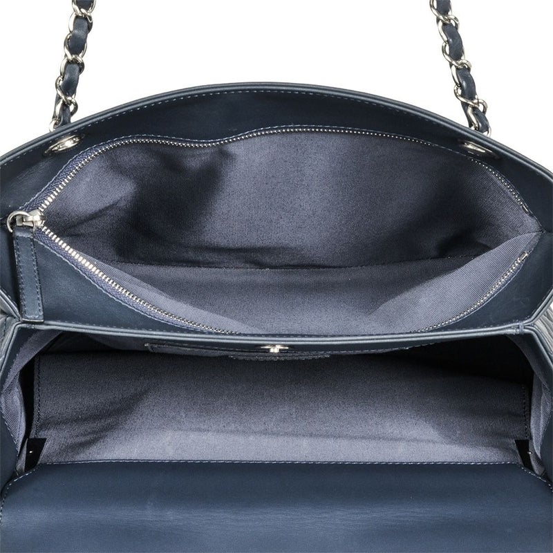 シャネル CHANEL マトラッセ チェーン トートバッグ レザー ネイビー シルバー金具 ココマーク チャーム【中古】