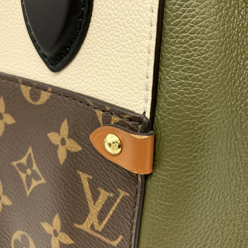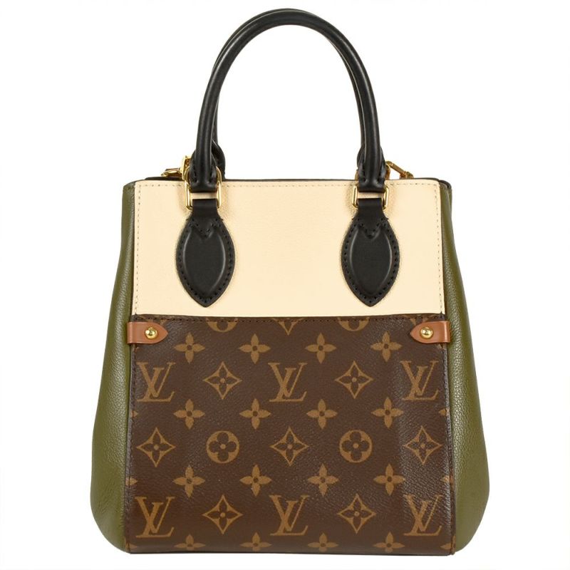 3. ルイヴィトン LOUIS VUITTON フォールド トート PM ハンドバッグ 2WAY レザー モノグラムキャンバス M45388 カーキ SR0261 レディース【中古】