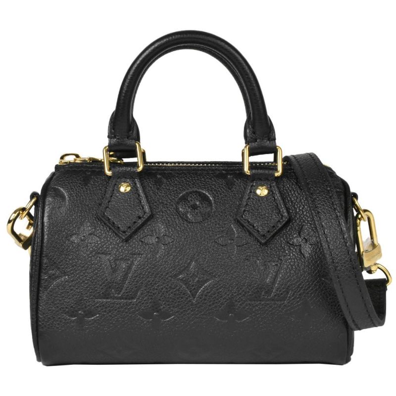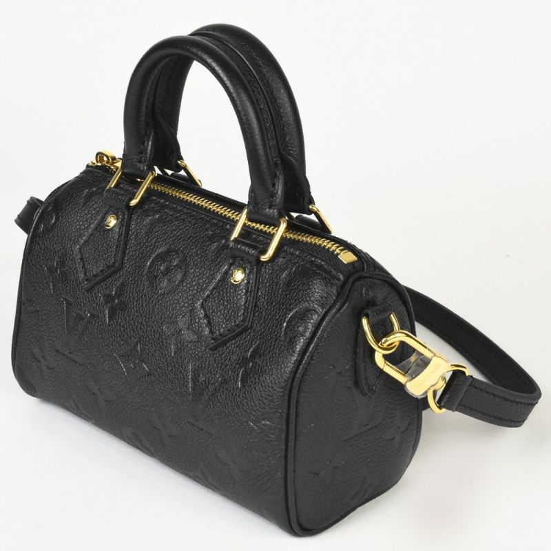 4. ルイヴィトン LOUIS VUITTON ナノ・スピーディ ハンドバッグ 2WAY モノグラム アンプラント M82450 ブラック ゴールド金具 RFID【中古】