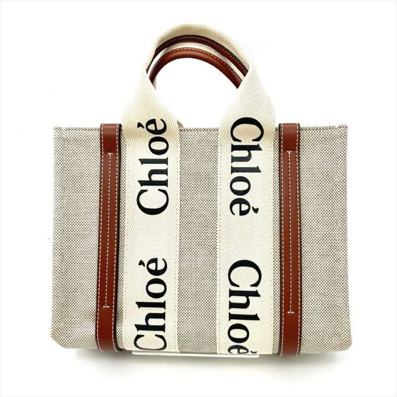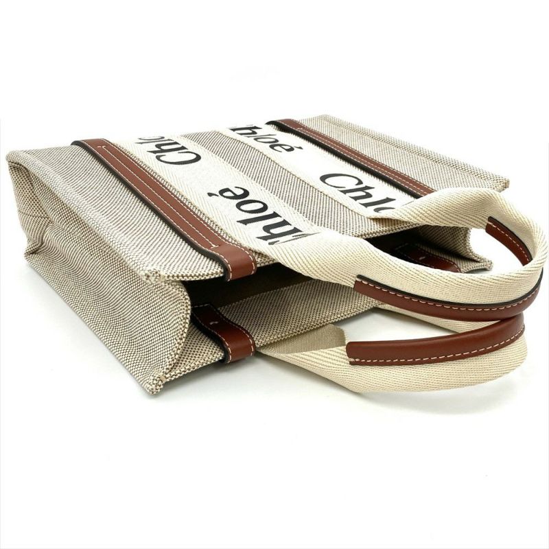 5. クロエ Chloe ウッディスモール トートバッグ コットン レザー 4217565 ブラウン レディース【中古】