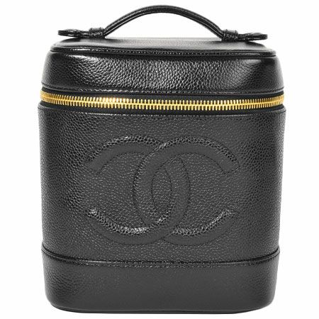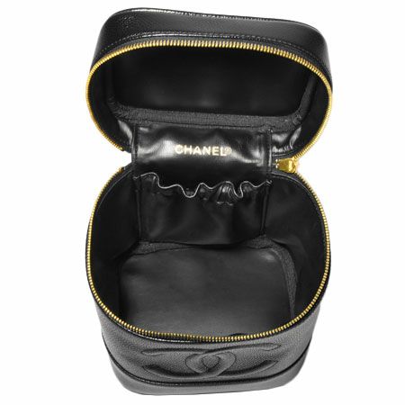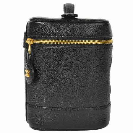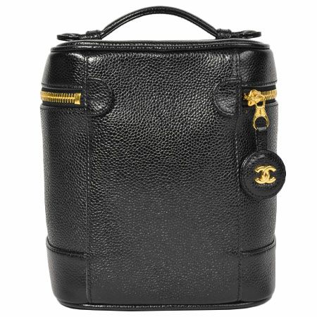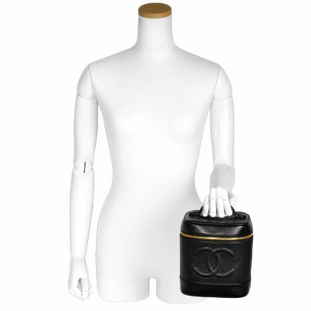 送料無料 シャネル CHANEL バニティバッグ キャビアスキン ココマーク ブラック コスメ 化粧ポーチ ヴィンテージ A01998【中古】