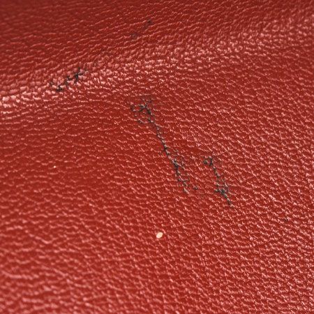 詳細 外側:型崩れ、小傷、白汚れ、四つ角のスレ、コバ部にスレ、ショルダーにクセ有