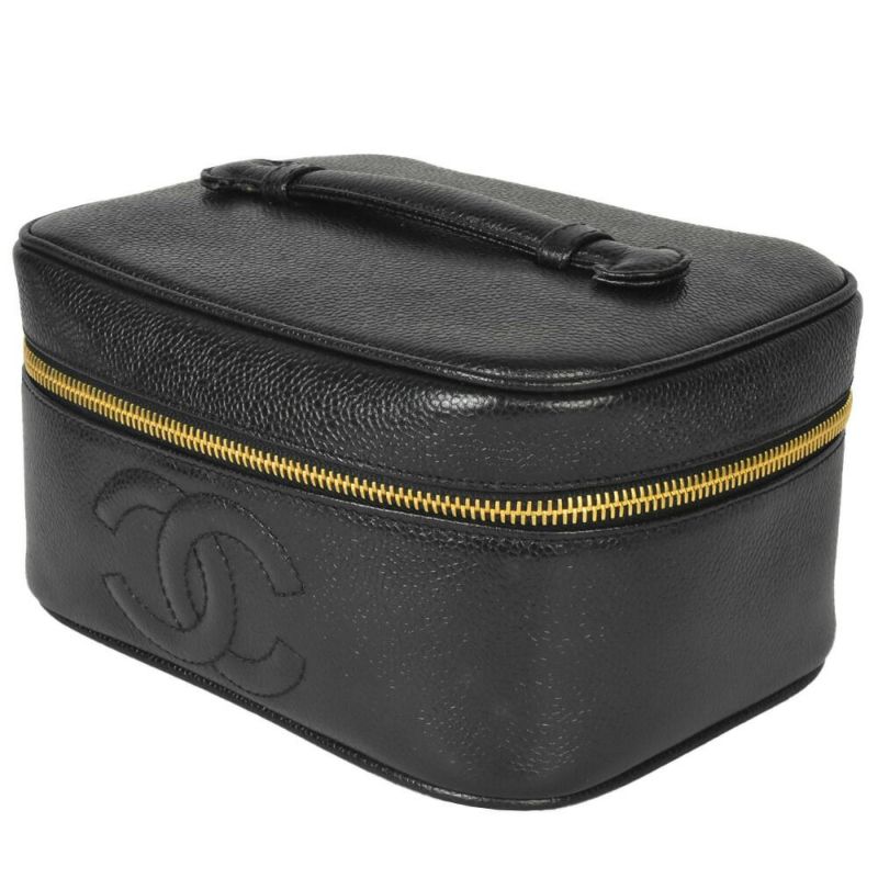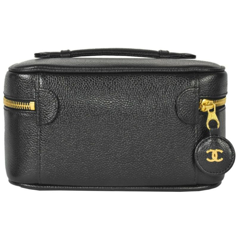 送料無料 シャネル CHANEL バニティバッグ キャビアスキン ココマーク ブラック ゴールド金具 コスメ 化粧ポーチ ヴィンテージ A01997【中古】