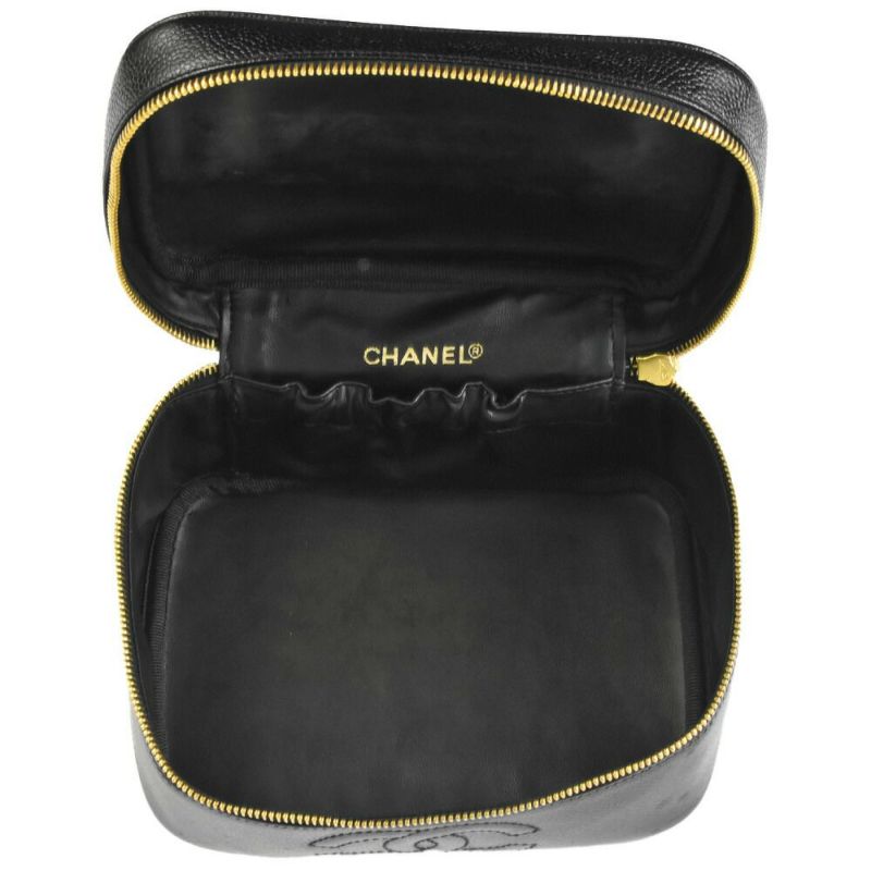 3. シャネル CHANEL バニティバッグ キャビアスキン ココマーク ブラック ゴールド金具 コスメ 化粧ポーチ ヴィンテージ A01997【中古】