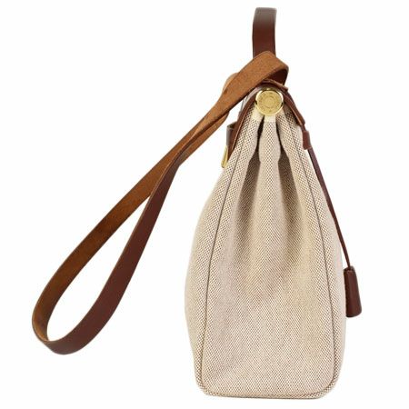 3. エルメス HERMES エールバッグPM 2WAY ハンドバッグ ショルダーバッグ ブラウン/ベージュ トワル地/レザー □E刻印(2001年製)【中古】