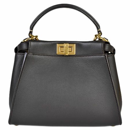 送料無料 フェンディ FENDI ピーカブー ミニ ハンドバッグ ペカン 2WAY ストラップ付 レザー ダークブラウン 8BN244 AAFLF 19TW【中古】