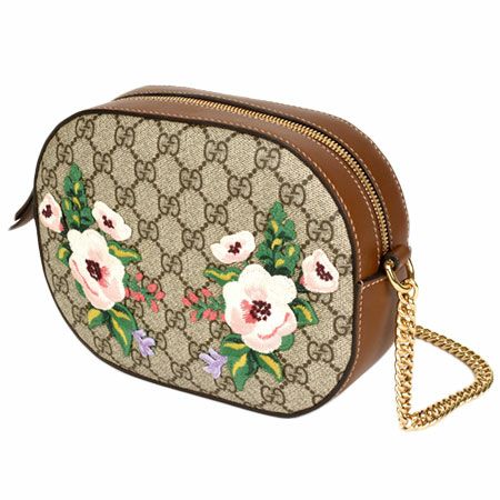 5. グッチ GUCCI チェーンショルダーバッグ GGスプリーム キャンバス レザー 花柄 ゴールド金具 刺繍 409535【中古】