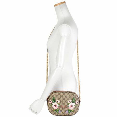 3. グッチ GUCCI チェーンショルダーバッグ GGスプリーム キャンバス レザー 花柄 ゴールド金具 刺繍 409535【中古】
