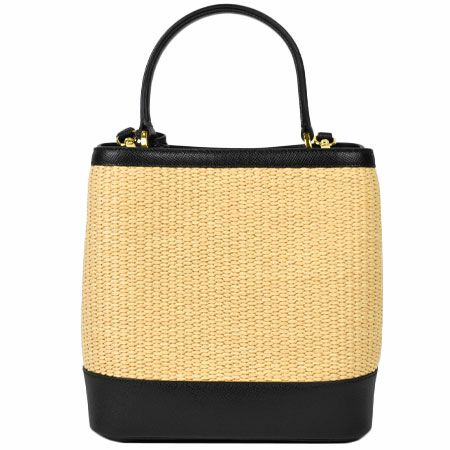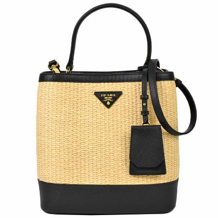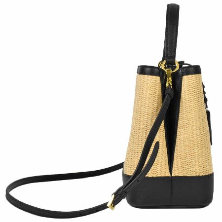 送料無料 プラダ PRADA パニエ ミディアム ショルダーストラップ付 2WAY ハンドバッグ サフィアーノ レザー ストロー ブラック 1BA212【中古】