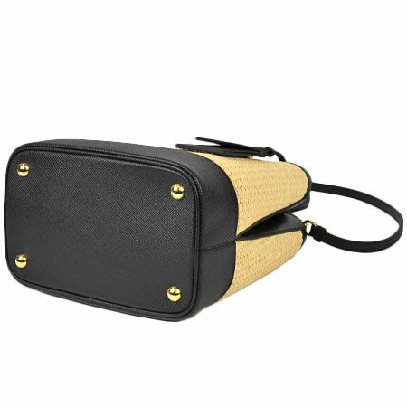 3. プラダ PRADA パニエ ミディアム ショルダーストラップ付 2WAY ハンドバッグ サフィアーノ レザー ストロー ブラック 1BA212【中古】
