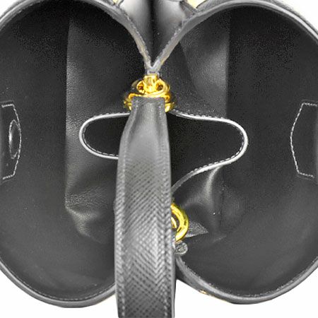 5. プラダ PRADA パニエ ミディアム ショルダーストラップ付 2WAY ハンドバッグ サフィアーノ レザー ストロー ブラック 1BA212【中古】