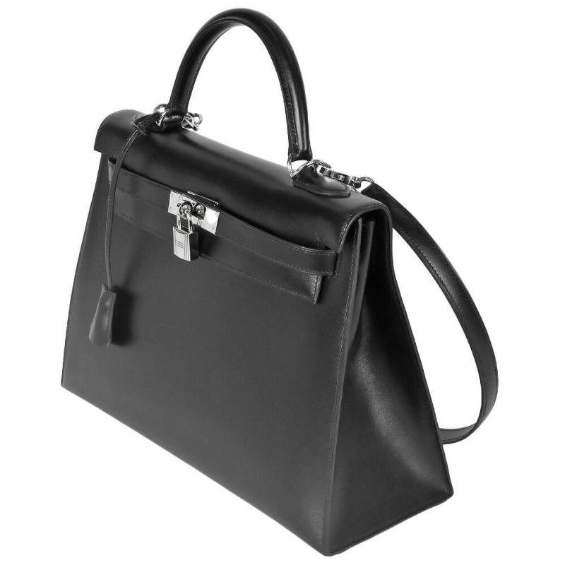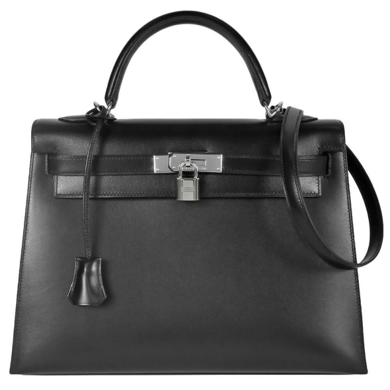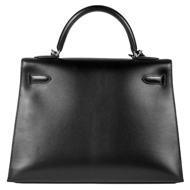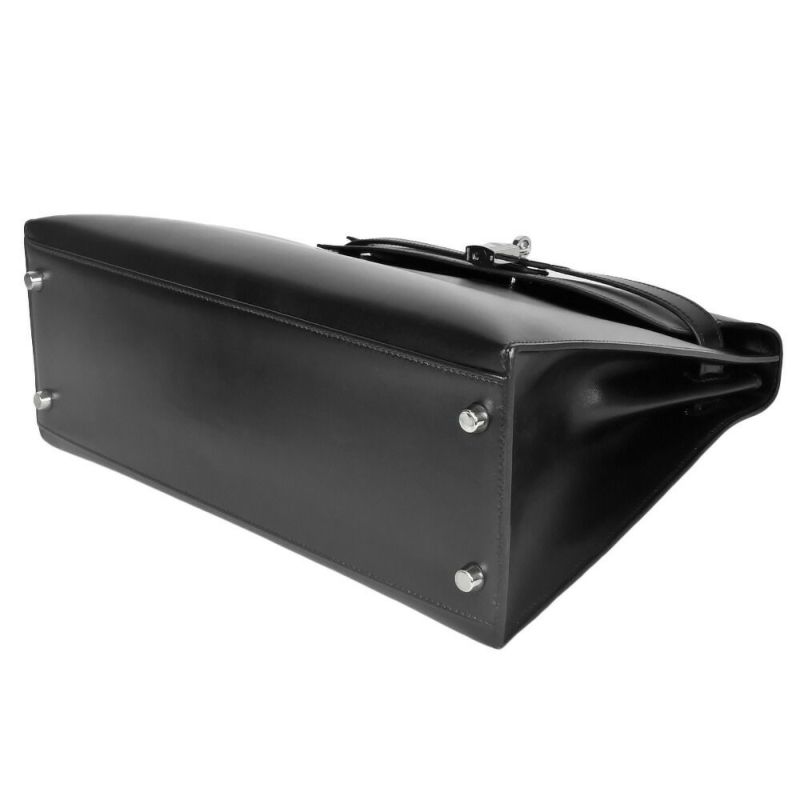 3. エルメス HERMES ケリー32 外縫い ショルダーストラップ付 2WAY ハンドバッグ ボックスカーフ ノワール シルバー金具 □J刻印(2006年)【中古】