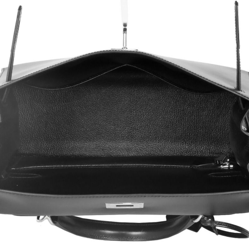 4. エルメス HERMES ケリー32 外縫い ショルダーストラップ付 2WAY ハンドバッグ ボックスカーフ ノワール シルバー金具 □J刻印(2006年)【中古】