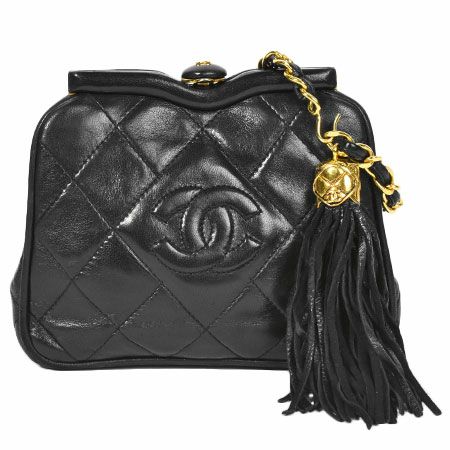 送料無料 シャネル CHANEL マトラッセ ココマーク チェーンストラップ付 ハンドバッグ タッセル がま口 ウェストポーチ ブラック ラムスキン ゴールド金具【中古】