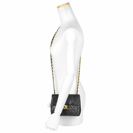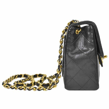 3. シャネル CHANEL チェーンショルダー ミニマトラッセ ラムスキン ブラック ゴールド金具 A01115【中古】