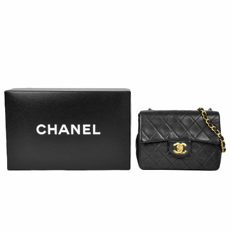 送料無料 シャネル CHANEL チェーンショルダー ミニマトラッセ ラムスキン ブラック ゴールド金具 A01115【中古】