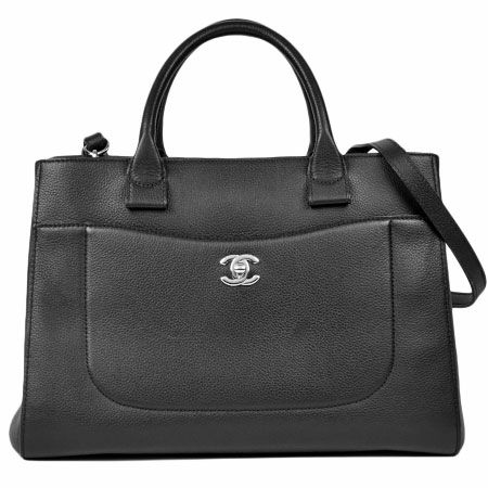 送料無料 シャネル CHANEL ネオエグゼクティブトート ショルダーストラップ付 2WAY トートバッグ ソフトキャビアスキン レザー ブラック シルバー金具 A69930【中古】